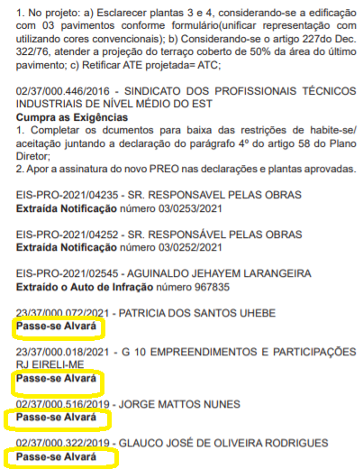 Veja abaixo como são publicados, laconicamente, os despachos de licenciamento urbanístico: simplesmente com “passe-se o alvará”!