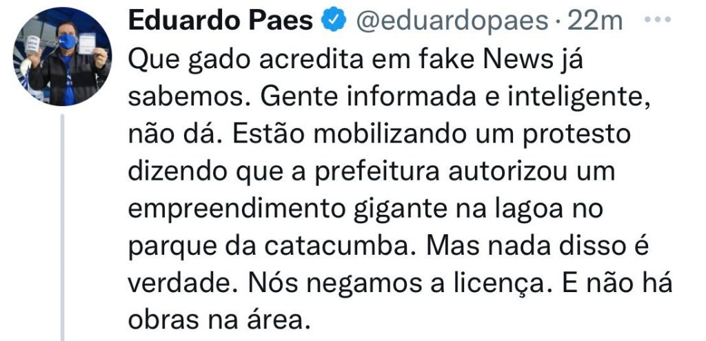 Até o adimplemento desta obrigação pela Prefeitura reclamar de fake news é puro “mi, mi, mi”, injustificado.